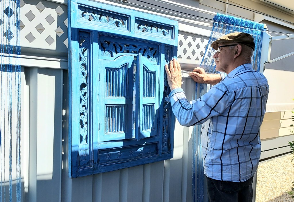 There’s a long story behind the window but the short version is it was bought after 2 years of not knowing where to hang it. The price was way over our budget too so we forgot about it. When we stared planning the Alfresco area we went back to the store but it was gone and they weren’t getting anymore. A week later the store owner was there and told us he had one left but it had been slightly damaged in the flood. The damage was minimal and sold it to us for $50AUS. Bargain!