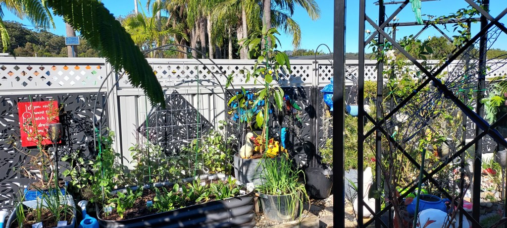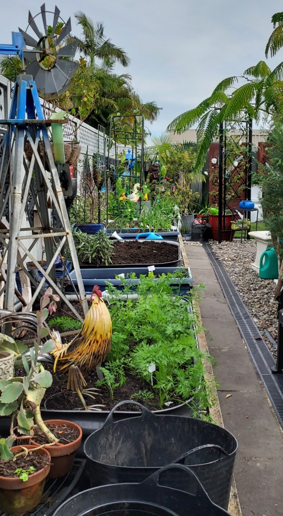 Winter crops of carrots, spring onions, leeks, spinach and brown onions. Not much growing this year with lower temperatures overnight. We have also planted an avocado tree in a large pot. It will be interesting how it does. A pear tree is under consideration too. 🙂