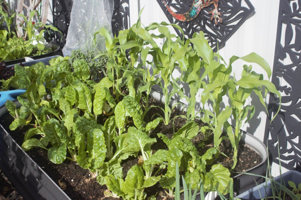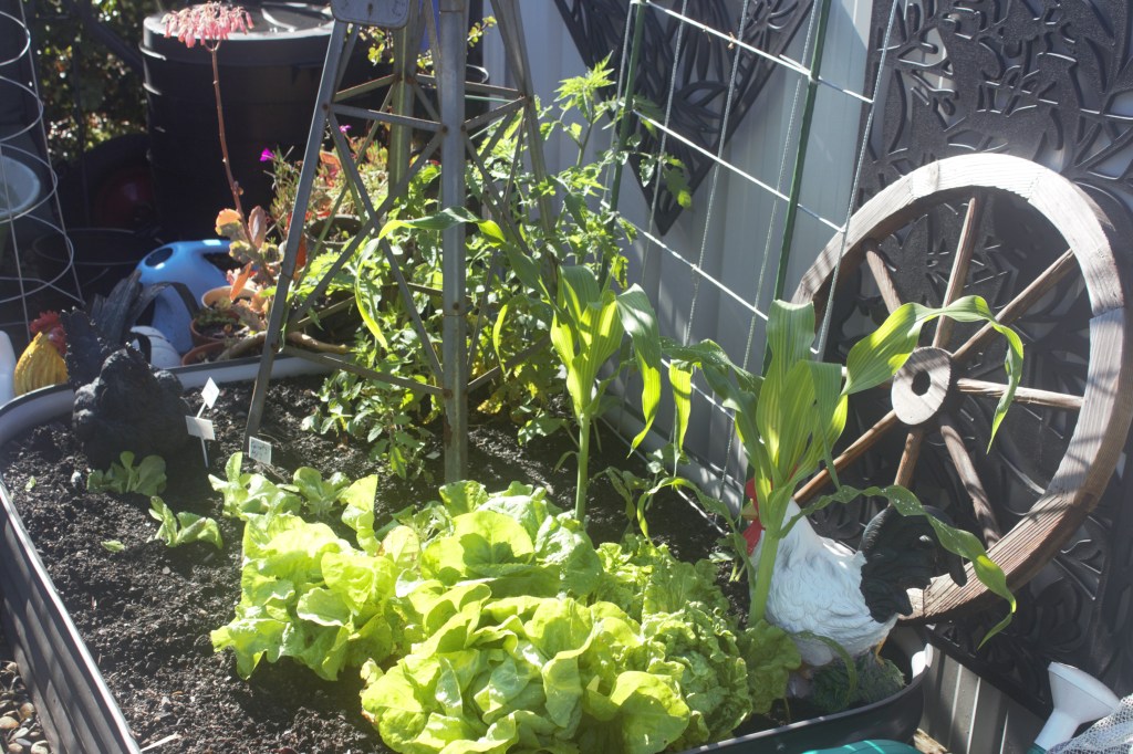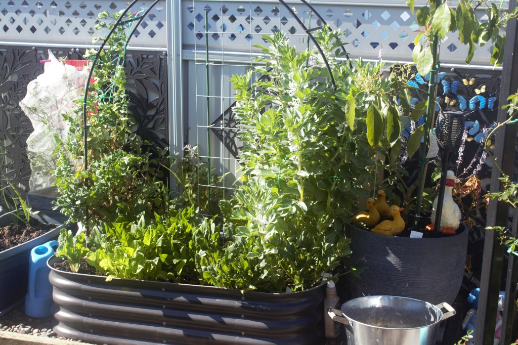 From this wheelchair, I can’t see two of our three vegetable plots so I sent Norm out with the camera again. I think sometime in the future we will need to have a wider pathway along the front of the above ground plots. We’re not getting any younger and we’ll want to be able to have access to all the garden for years to come.