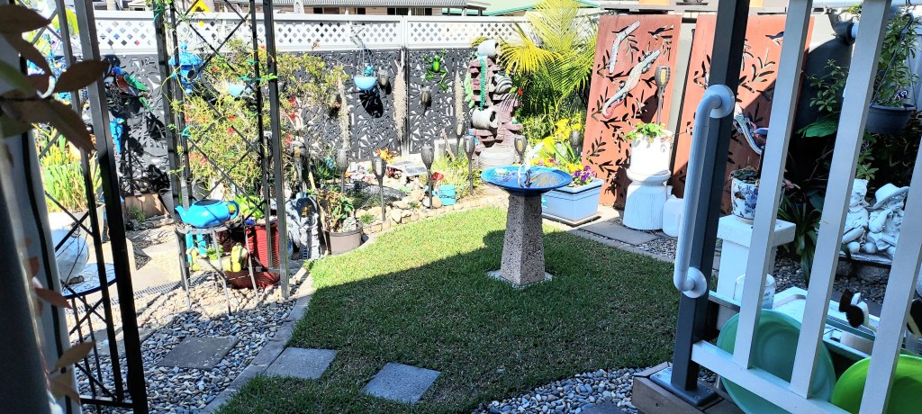 At present this is the only part of the back garden I can see from the wheelchair. I’m hoping with some slight rearrangement of items at the side of the house, I’ll be able to sit in the outdoor kitchen diner but for now I’m content to enjoy the verandah and the recovery of myself and of weather beaten garden favourites.