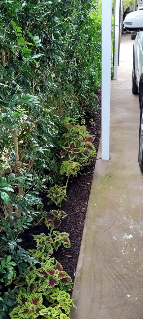 With January being the hottest month of the year, it’s often difficult to choose the right day – a cooler day, to mulch the front garden and the garden that runs the length of the carport. Most other seasons don’t work with the front garden and after the Christmas lights a packed away for another year, it really is the best time. For us anyway. We started laying mulch this time from the rear of the drive and worked forward to the front of the house. We did this simply because we always run out of mulch for that far end of the drive when we do the front garden first. However, just as we finished along the drive it began to rain and continued most of the day. Good for the garden but not while gardening. At least it gave us a break and some time to plan how to tackle the front garden.