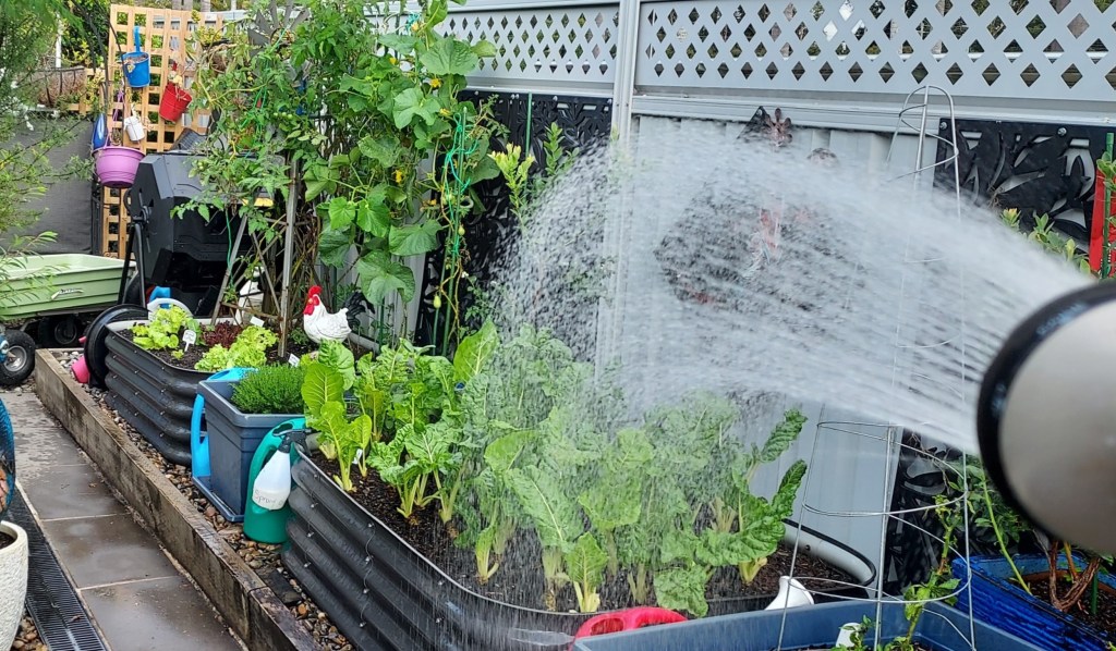 Our quarterly water bill was surprisingly acceptable with vegetable and herbs needing a spray when we have days without rain.