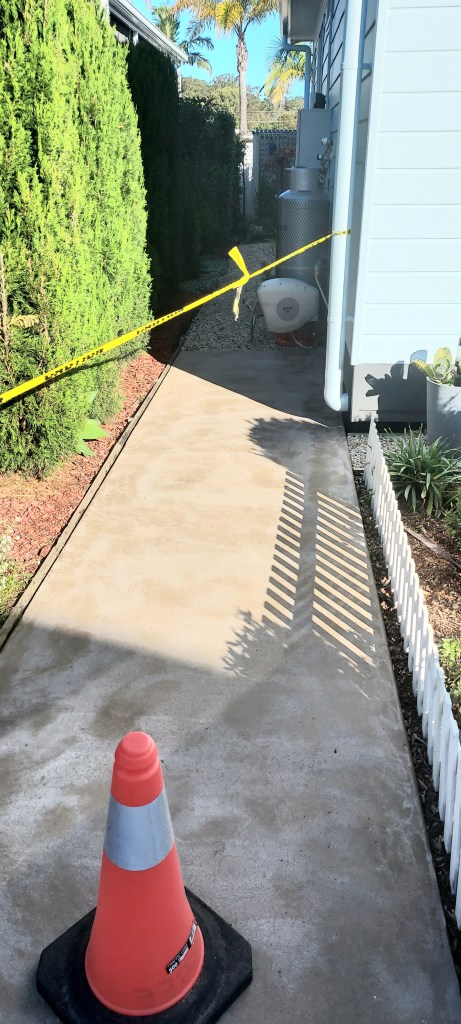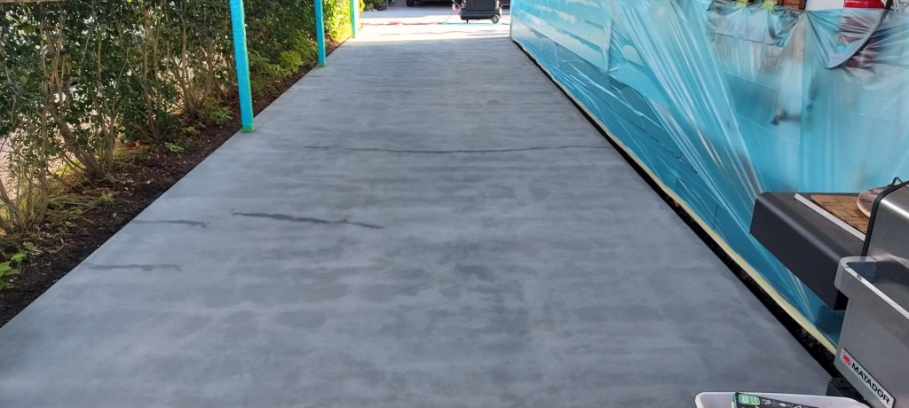 The final coat of the sealer went on 3 days ago. 1 more day before the sealant will have had time to cure. Once it’s cured we can start washing the dust off the walls and side gardens. It will be another 3 weeks before we can start placing things like the divider and herb pots back in place. Then it will be ready to bring the car back in. Climbing over the gnomes in the front or out the backdoor, past the clothesline into next door to use the neighbours footpath is not fun but it will be all worth it.