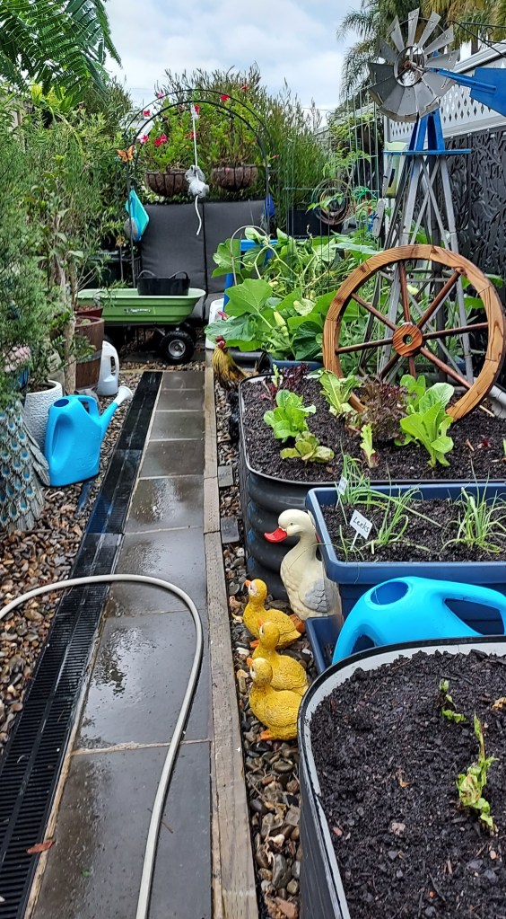 Spinach seedlings replanted to replace the spinach I planted 2 years ago – originally in polystyrene banana boxes. It’s seems a life time ago now. I’m hoping these will also yield multiple times throughout the next year or two. The seedlings I grew from seed. You may be able to see more seedlings sprouting in the 3rd photo below in a 2nd grey rectangular pot.
