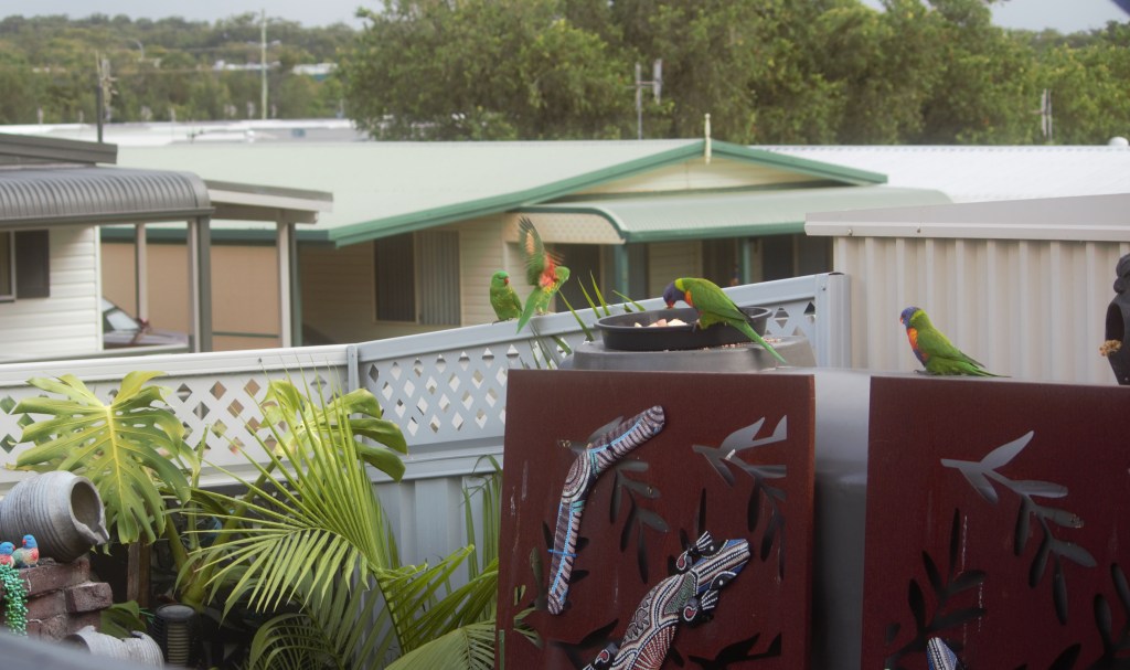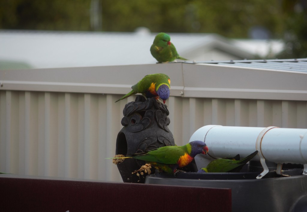 These photos were just the ones Norm manage to take on my mobile phone. I’ll check the photos on the Canon EOS 650D while we are on a week’s holiday, starting tomorrow, up the coast. I was busy trying to keep the tablet focused, and without falling off the back steps, so our 9 year-old granddaughter could see them via messenger video call we had been on for ten minutes when the birds came down. She was calling from a very wet and soggy Sydney where her family, like thousands of other families, are still cut off by flooding rivers. Bridges have been under water now for ten days. She’ll be back at school on Monday. Not sure about anyone getting to work on the other side of the river though.